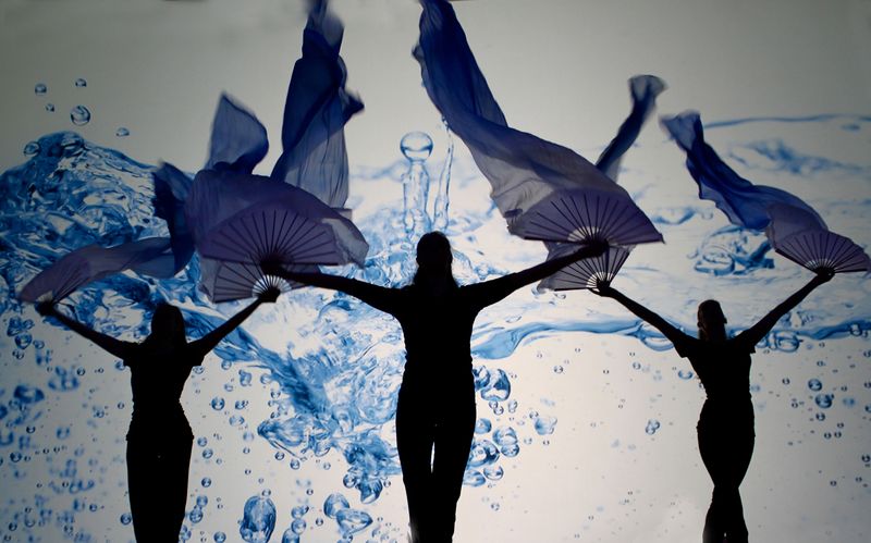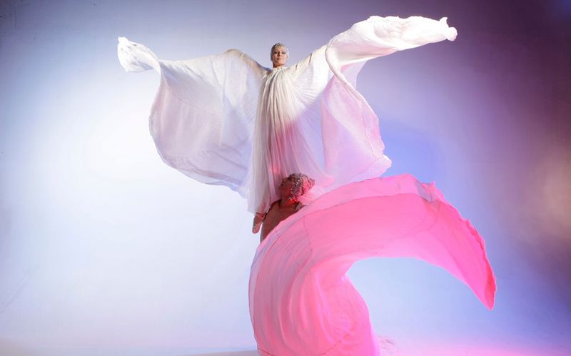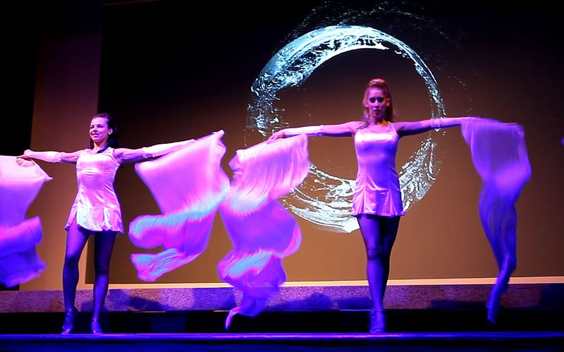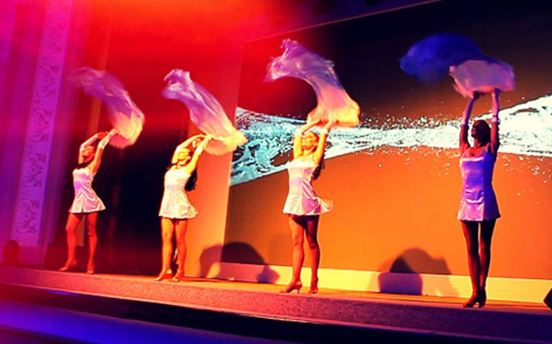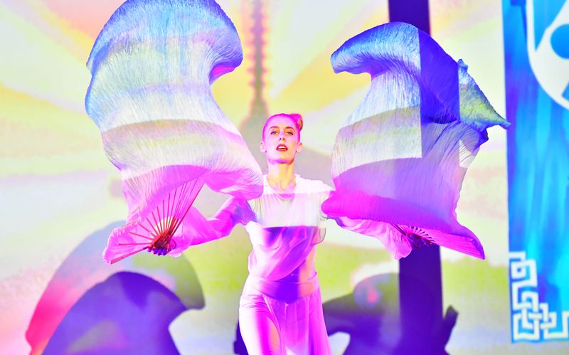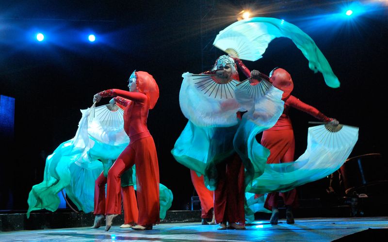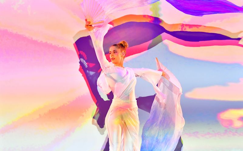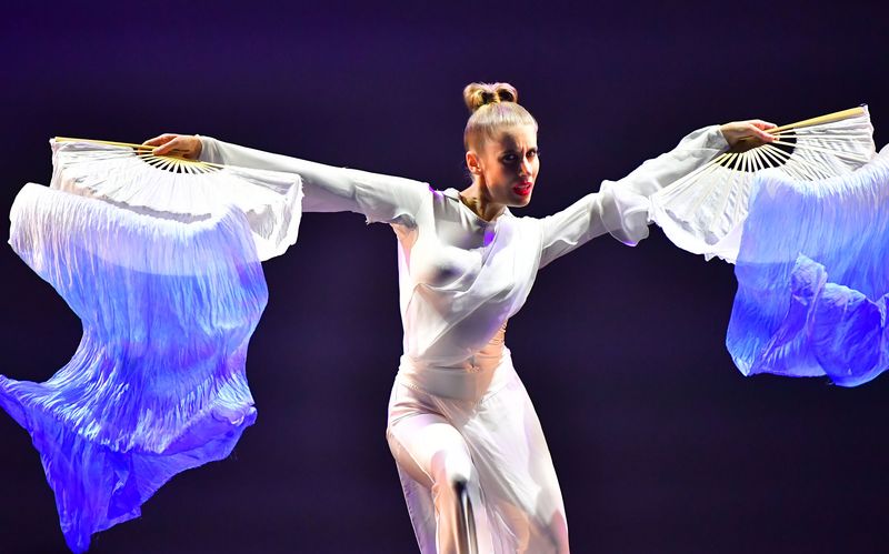Silks appear like waving blossoms by means of skilful movement and lighting.