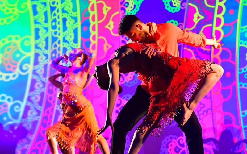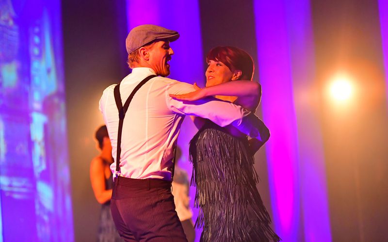Couple dancers performing in perfect unity. Harmonious interplay that is full of emotion. Pure passion.