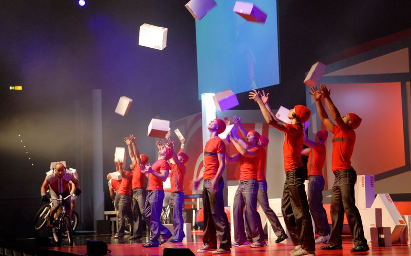 A show creation based on parcels? Yes, that was our idea for an adequate show concept for the world’s largest mail order company OTTO. Our customer agreed on that and handed out more than 80 empty parcels of different sizes that we staged in a speedy and breathtaking performance.