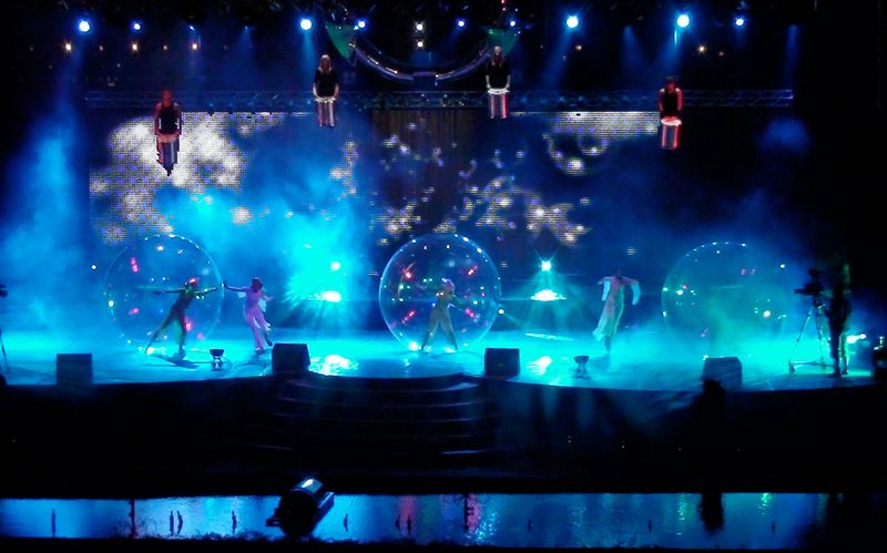In view of the dimension of the event we got little information from our customers. They were looking for show acts for a huge stage on which a big performance should take place on the occasion of the 38th National Day of the United Arab Emirates in the desert city of Al Ain. We although got the acceptance very quickly with our Flying Drummers in combination with the Dreamball Dancers. Big pictures with a powerful effect. A full success.