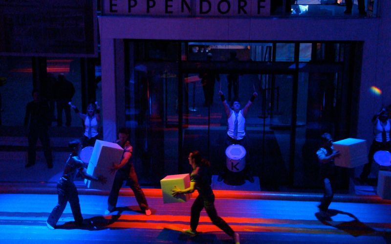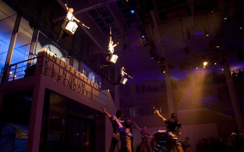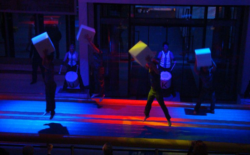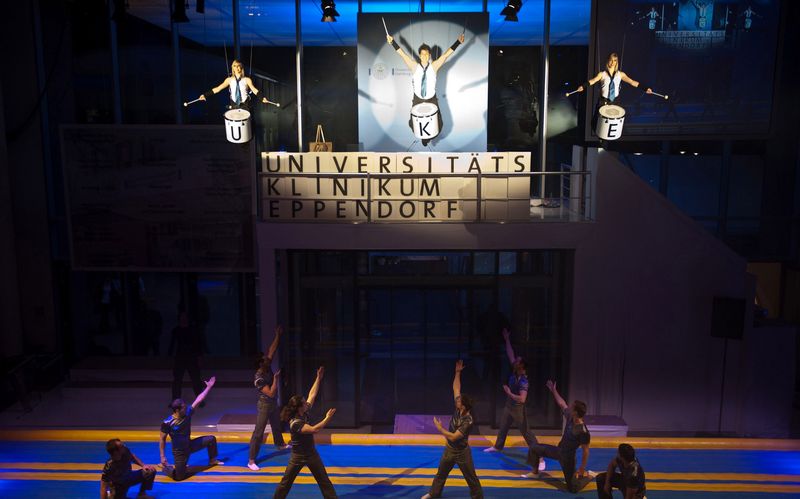 The show concept was quickly accepted. For us however work just started. The German name of the hospital is not exactly short: “UKE - Universitätsklinikum Hamburg-Eppendorf“. This meant for us 38 cubes, blanks inclusive that shall be built up with acrobatic precision. We gladly accepted the challenge and the audience thanked with big applause, when the last cube was set exactly with the last beat of the music.