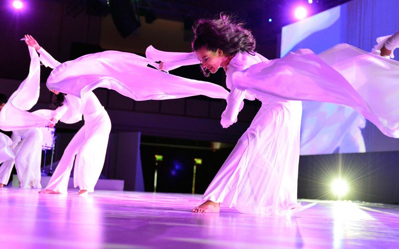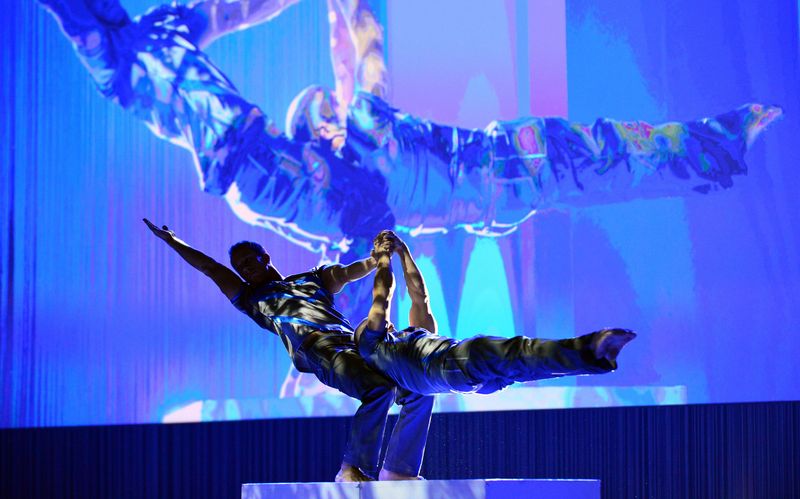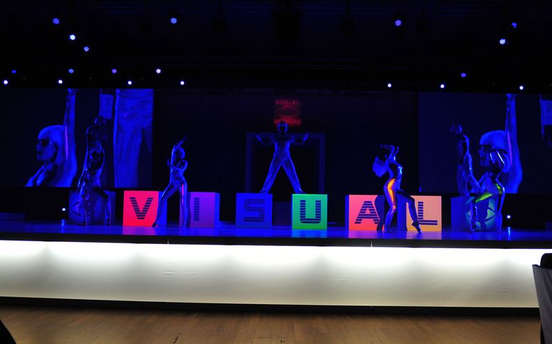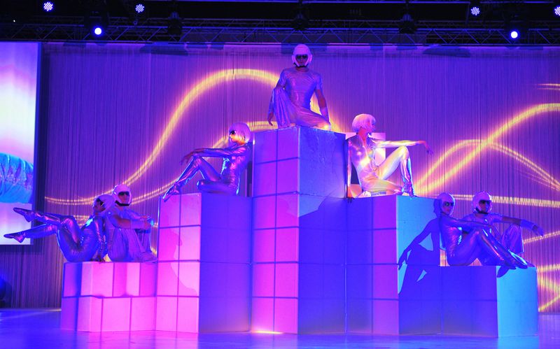 We started with a walk-act of our drummers, who accompanied the guests into the ball room. Swinging poles and Living Sculptures were placed as eyecatchers for the welcome situation. After a short speech by Mrs Schöneberger the stage was opened for our 45-minutes show featuring LED-Drummers, RG-Dancers, Skate Jugglers, Visual Movers, Flatland freestyle BMX-Artists, Dreamball Dancers, Acro Balance, Flying Globe, Trendstyle Dancers and Flying Acrobats. The choregraphy convinced by smooth transitions between the modules and the theatrical group composition.