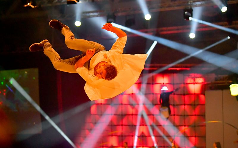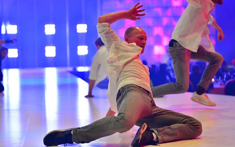 The audience was enjoying a very varied program: eight professional dancers lead the red thread through the staging and artfully blended the show highlights into another: Visual Movers, Light Muses, Tricking, Cyr Wheel, Flying Acrobats, RG-Dancers, Flying Globe, a drum battle on the Flying Octagon, as well as the top act Flying Drummers.