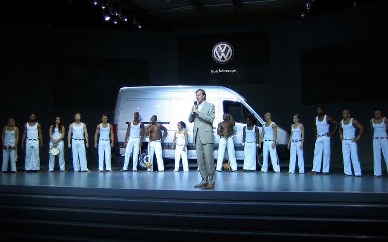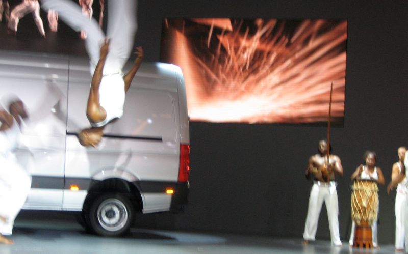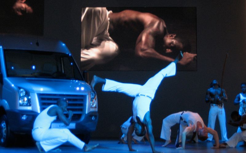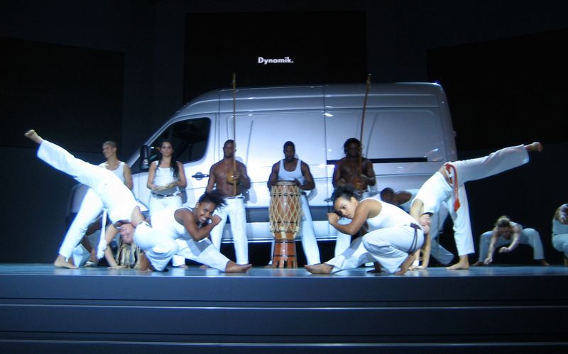 On behalf of Wolf Productions we choreographed a show with the top stars of the Capoeira scene according to the concept of the Lead Agency Triad Berlin Projects. The Brazilian dance Capoeira includes all the product values which Volkswagen attributes to the brandnew Crafter utility vehicle: Extremely strong- the muscular, well-toned bodies represent power, the fast rotations, kicks and jumps show dynamic, the smooth catlike movements the design.