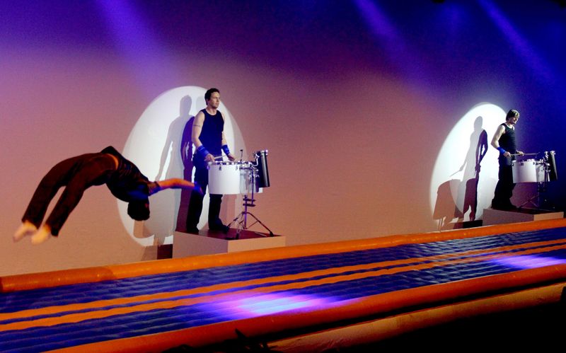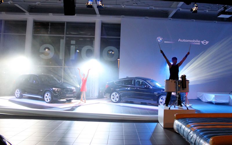 BMW Procar, Germany’s largest BMW dealer, wished to launch the new show room in Cologne with a big bang. That’s why we were called. As an exciting opening dancers are acting behind a 20m shadow screen, so that only their striking silhouettes are visible. In front of the curtain we are setting the mood with a dynamic acrobatic presentation accompanied by Live-Drummers. With a drum roll and Kabuki effect the curtain drops surprisingly and allows the view of the latest BMW-models.