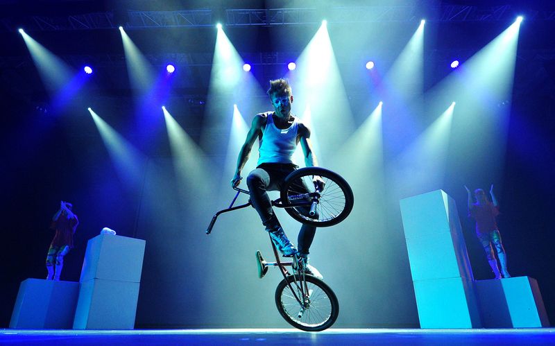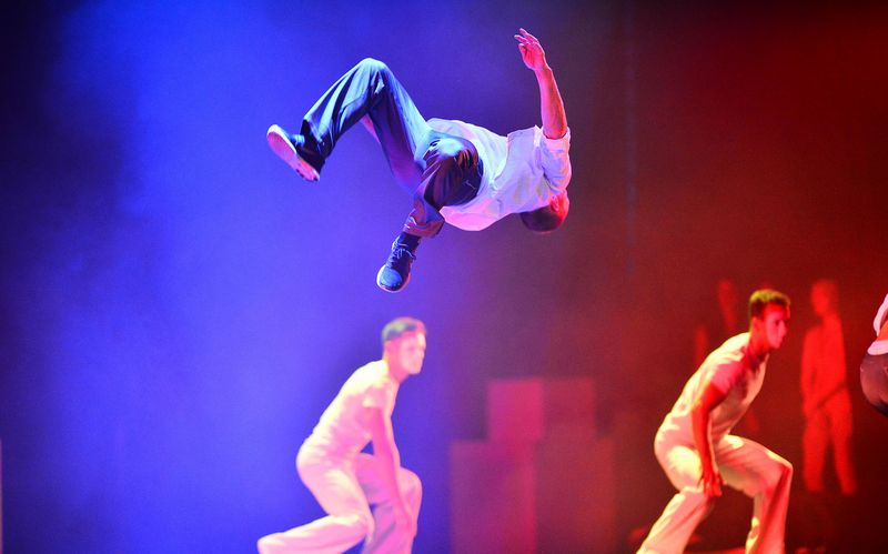 The performance shows a dynamic way to break out of everyday life. It’s a story about defeating monotony. To open up minds. To join a modern way of expression. The show develops a colourful experience through performing arts: Acrobatics, dance, live-drumming and visual effects merge into an intense unity.